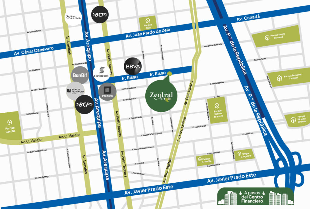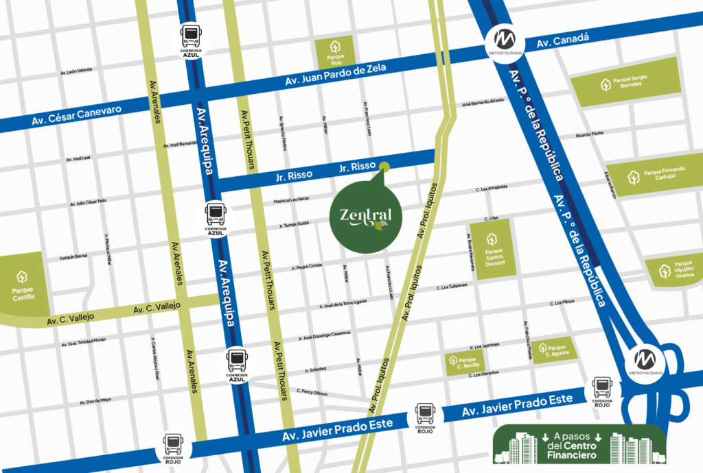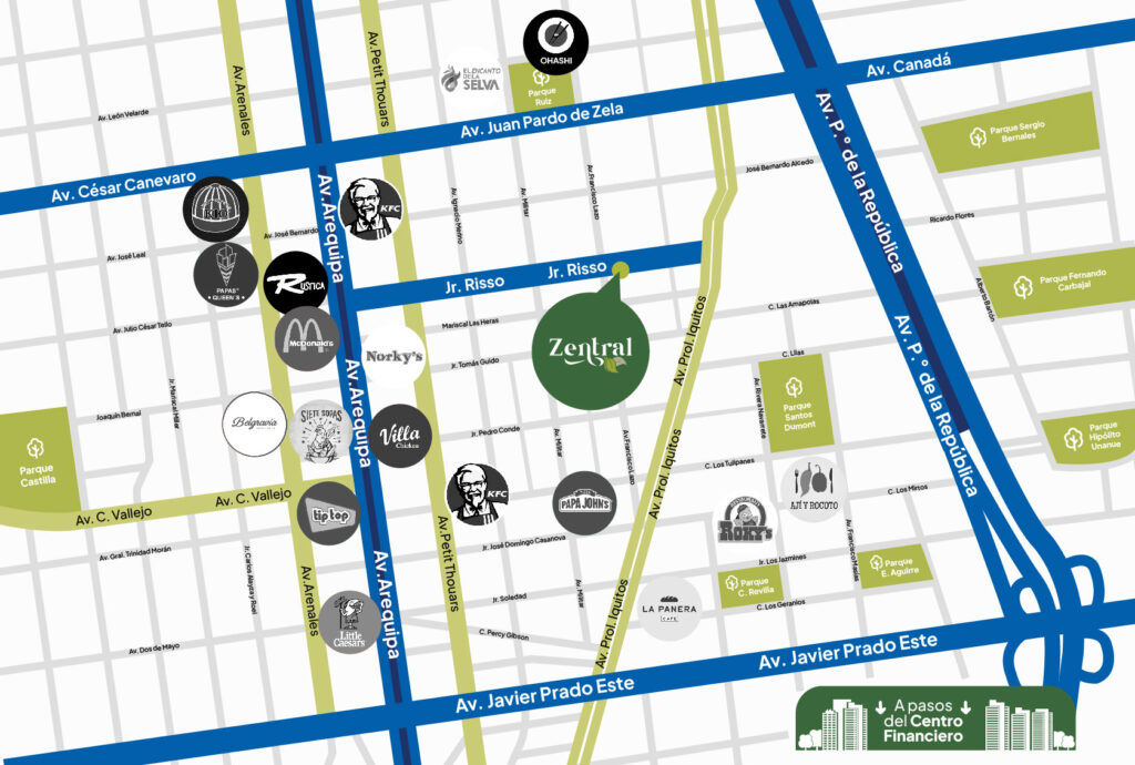 Zentral se encuentra estratégicamente ubicado en el corazón de Lince. Con acceso a vías principales de la ciudad y cerca a centros comerciales, universidades, clínicas, restaurantes y centros de entretenimiento. Para que tu estancia sea cercana y sin preocupaciones.